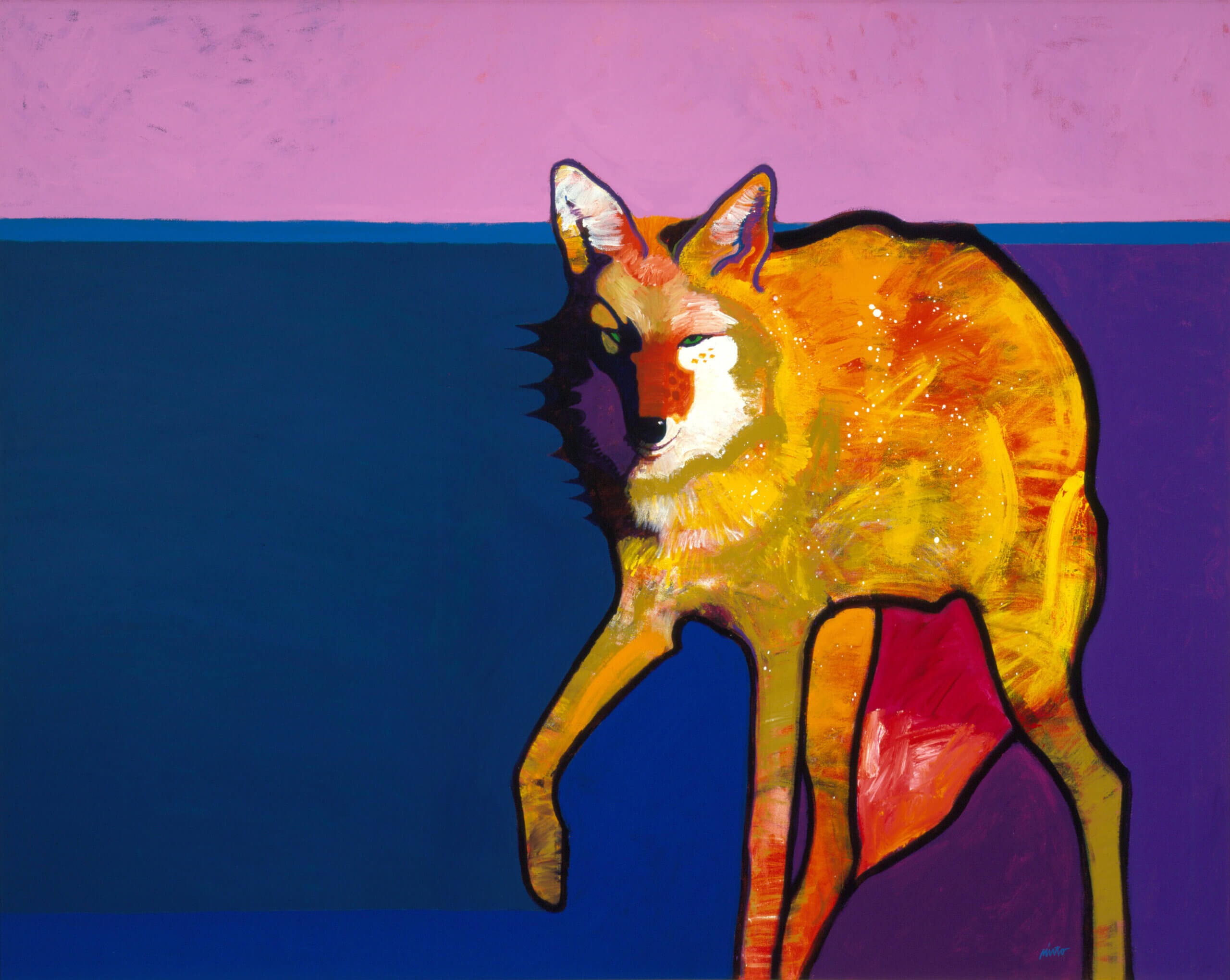 John Nieto (United States, b. 1936), Coyote, 1993. Acrylic on canvas. 48 x 60 inches. JKMCollection®, National Museum of Wildlife Art. © John Nieto.