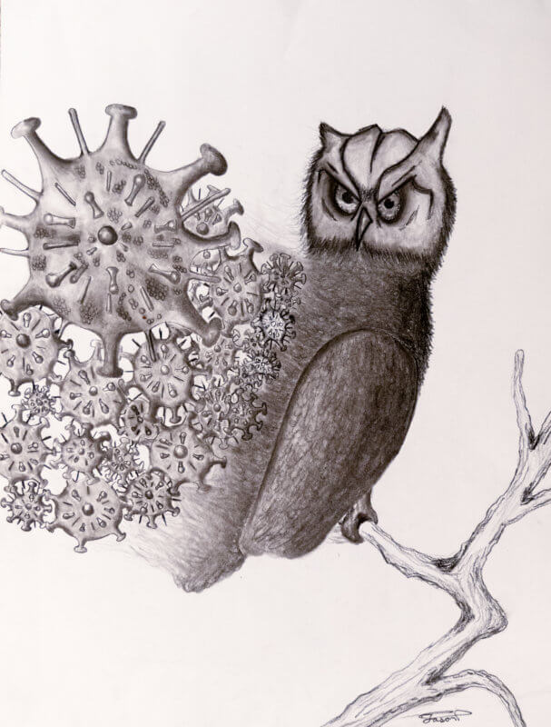 “Microbes are a fascinating subject. In this exhibit, we chose to represent bacteria and viruses that have impacts on our local wildlife. These microbes are both beneficial and detrimental to their hosts, and we hope the artworks on display here inspire you to take a closer look at the mysterious world of microbes.”