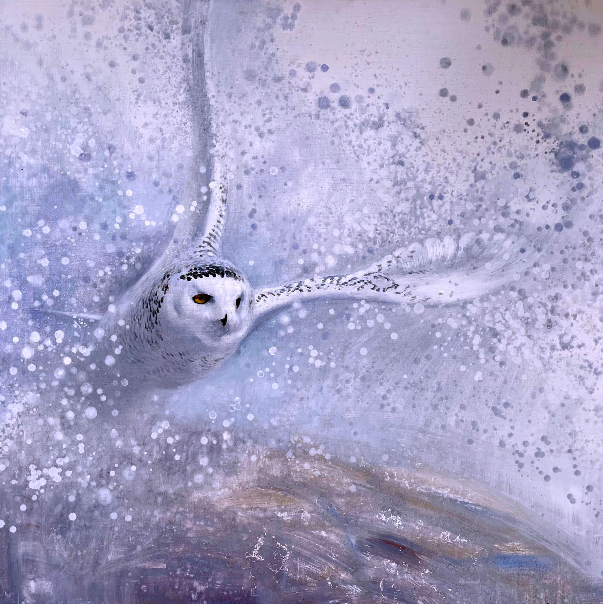 - Ewoud de Groot, Snowy Owl, Taking Off, oil on linen, 43 x 43 inches, Estimate: $10,000 – $15,000