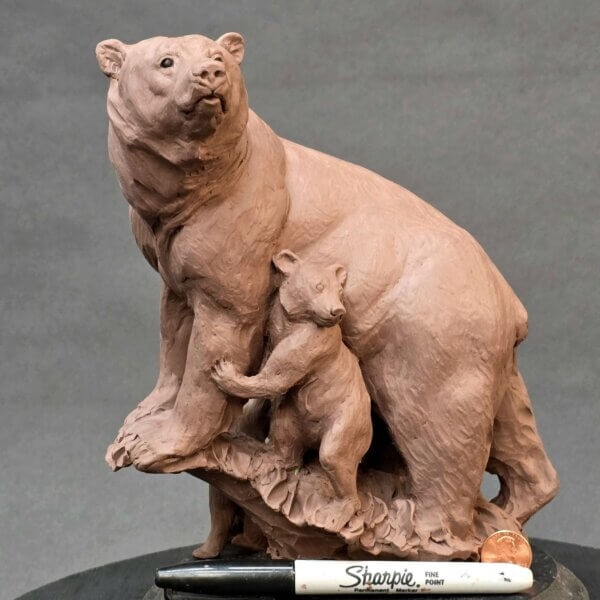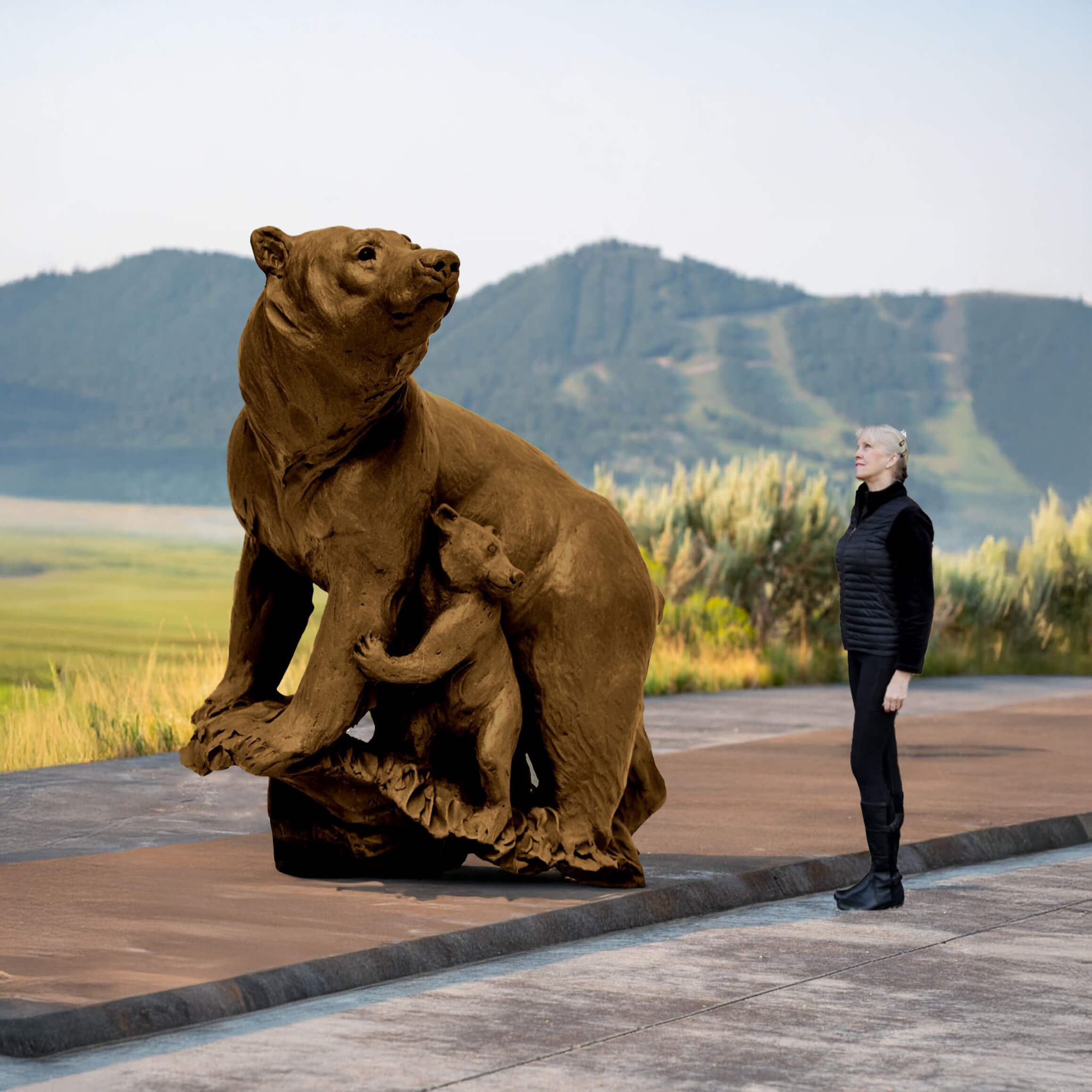 “This is more than a sculpture. It’s a statement of love, legacy, and the bond between people and the wild,” says Russell, who is creating the monument with her sculpting team consisting of Michael Dubail, Kristen Douglas-Seitz, and Colleen Moore. “To see her story honored at the National Museum of Wildlife Art is the realization of a dream we’ve carried for years.” Grizzly 399 will be depicted surveying her surroundings, standing over her four young cubs.