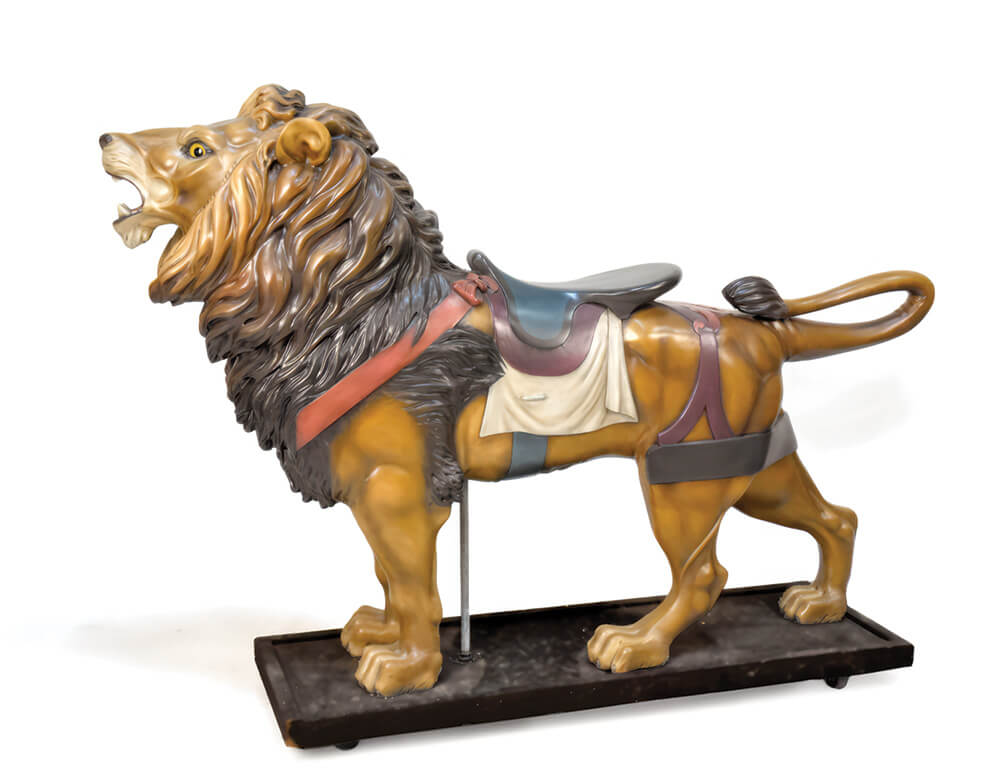 - Gustav Dentzel (Germany, 1844 – 1909), Outside Row Standing Lion, c. 1907. Carved Basswood and oil-based paints. 54 x 18 x 78 inches. Gift of Larry & Gail Freels, National Museum of Wildlife Art.