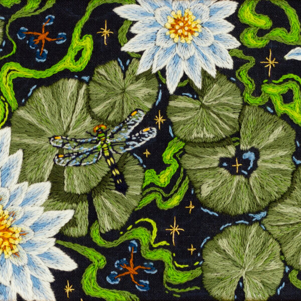 - © Juniper Wolfenbarger, Spirituality, 2024. Hand embroidery on linen. 7 x 8 3/4 x 3/4 inches.