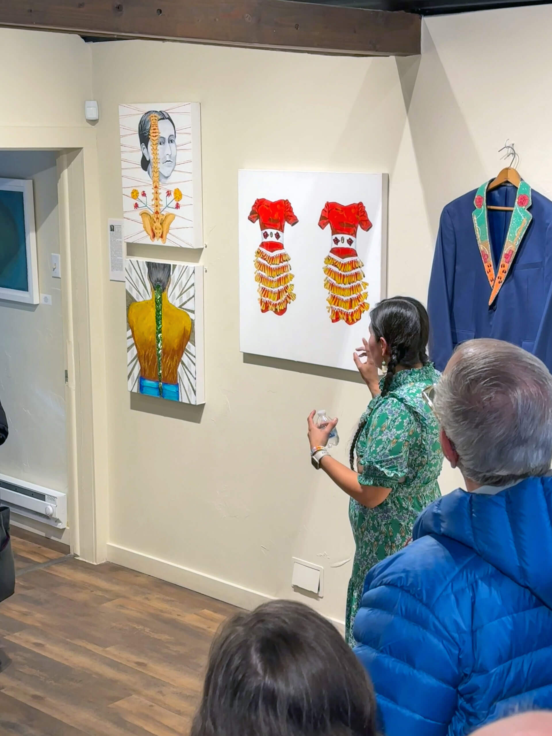 The Wyoming Committee of the National Museum of Women in the Arts organized a traveling exhibition celebrating all five Wyoming Women to Watch. The exhibition opened in Jackson Hole at Shari Brownfield Fine Art, with a reception on March 13. Ortegon HighWalking performed two dances from her signature Blacklight Jingle Dress Dance, and Hanawalt led a Q&A with the artists. “My hope is that the recognition of these five artists brings more acknowledgement to all artists from this region,” says Hanawalt.