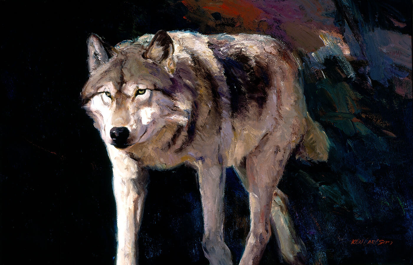 - Ken Carlson (United States, b. 1937), Wolf, 1988. Oil on board. 23 x 35 inches. JKMCollection®, National Museum of Wildlife Art. © Ken Carlson.