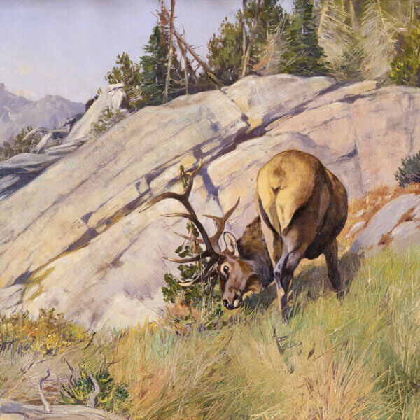 - Carl Rungius (Germany, 1869 – 1959), Last of the Velvet, c. 1900. Oil on Canvas. 21 3/4 x 33 9/16 in. Private Collection, Arizona.